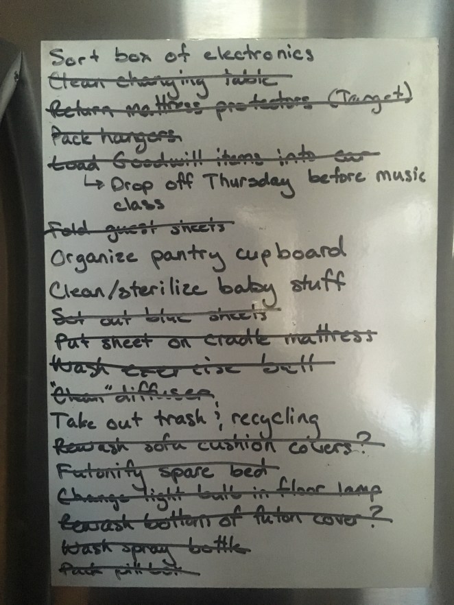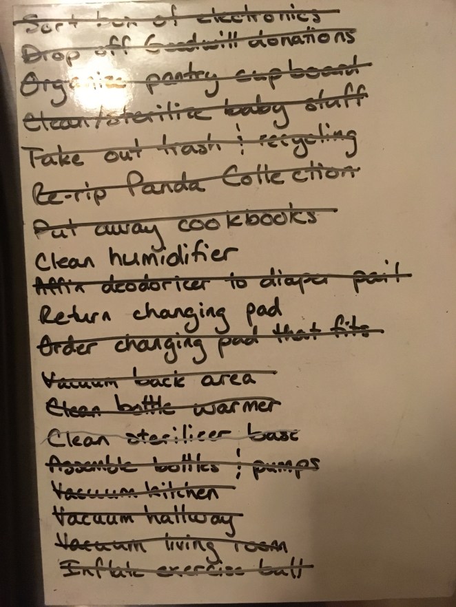 I’ve been pretty good about preparing my body though. Been going to Prenatal Fit around once a week, keeping up my yoga as my schedule allows, doing belly breaths, eating six dates a day (when I remember), getting back in the habit of drinking raspberry leaf tea, and nesting like a mo-fo.